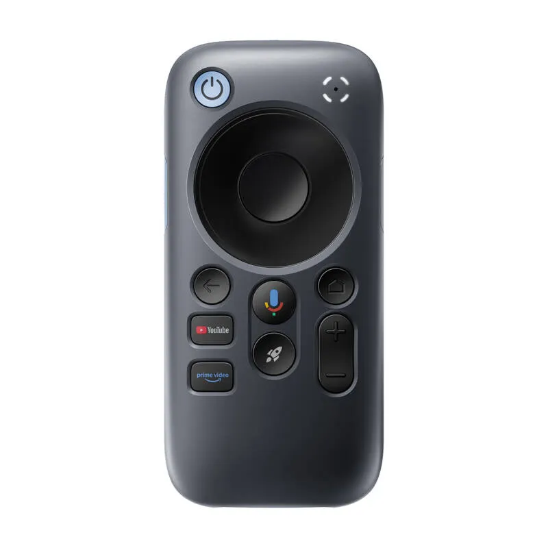 Featuring a precision joystick and ergonomic buttons, the remote allows easy navigation through applications and menus, making it suitable for Google TV and media playback.