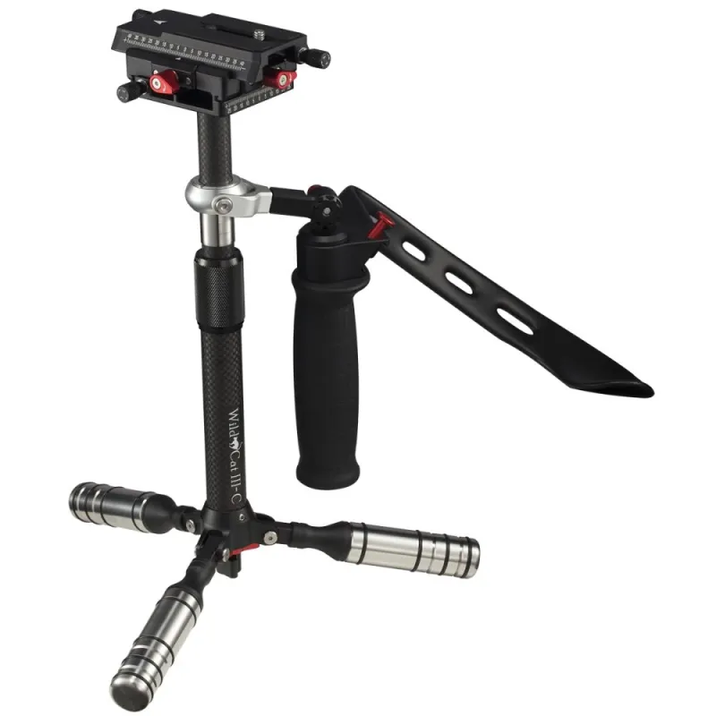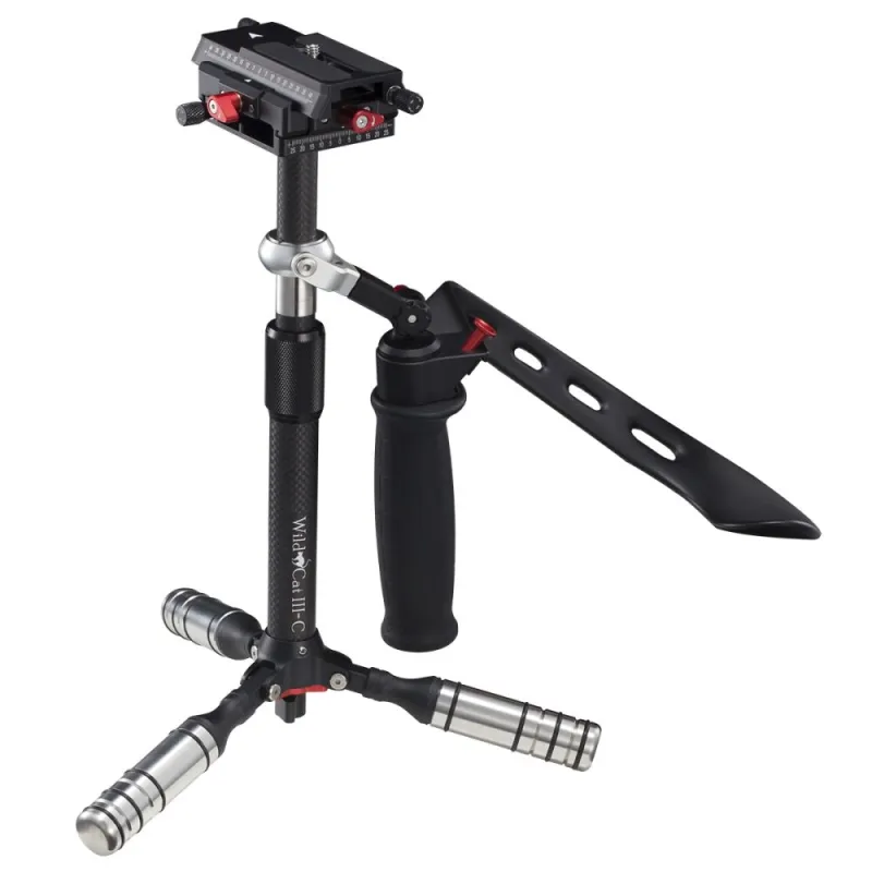 Wildcat is a precision designed, engineered and crafted mini stabilizer used by camera operators who need an ultra-portable camera stabiliser solution. Compact and supremely balanced, the WildCat will help you produce perfectly stable shots with continuous smooth, crane-like, cinematic movement. It is available in carbon fiber. This is a fully manual stabilizer-therefore no batteries required.