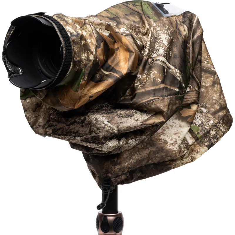 Many wildlife photographers have requested a camouflage version to remain discreet while protecting their camera from the elements. We are excited to offer a camo version using RealTree APX fabric, which is highly popular in the hunting world for its realistic and effective camouflage.