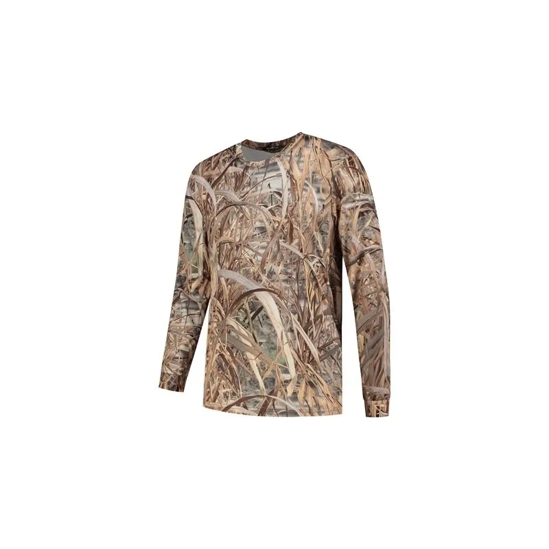 This T-shirt Long Sleeve Size S features a camouflage pattern in a realistic reed/grass print.
