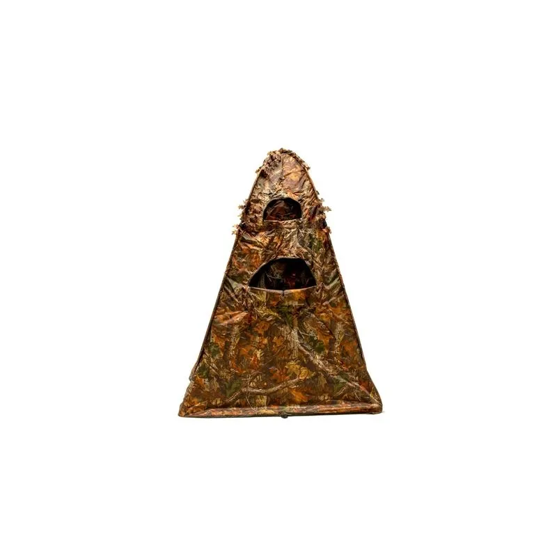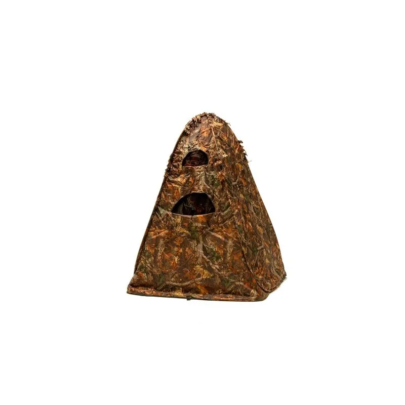 The tent fabric is well camouflaged at the outside, and black coated on the inside to make sure its as dark as possible inside. Youll have enough space to sit down or to stand right up, and of course space for your gear. Place your bag beside you on the floor.