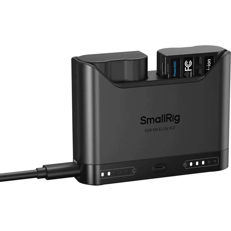 The SMALLRIG 5486 Turbo Charging Kit is designed for EN-EL15C camera batteries, providing a fast and efficient charging solution. This kit includes a compact charger that can charge two batteries simultaneously, ensuring you are always ready for your next shoot.