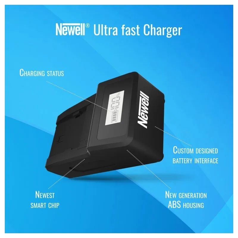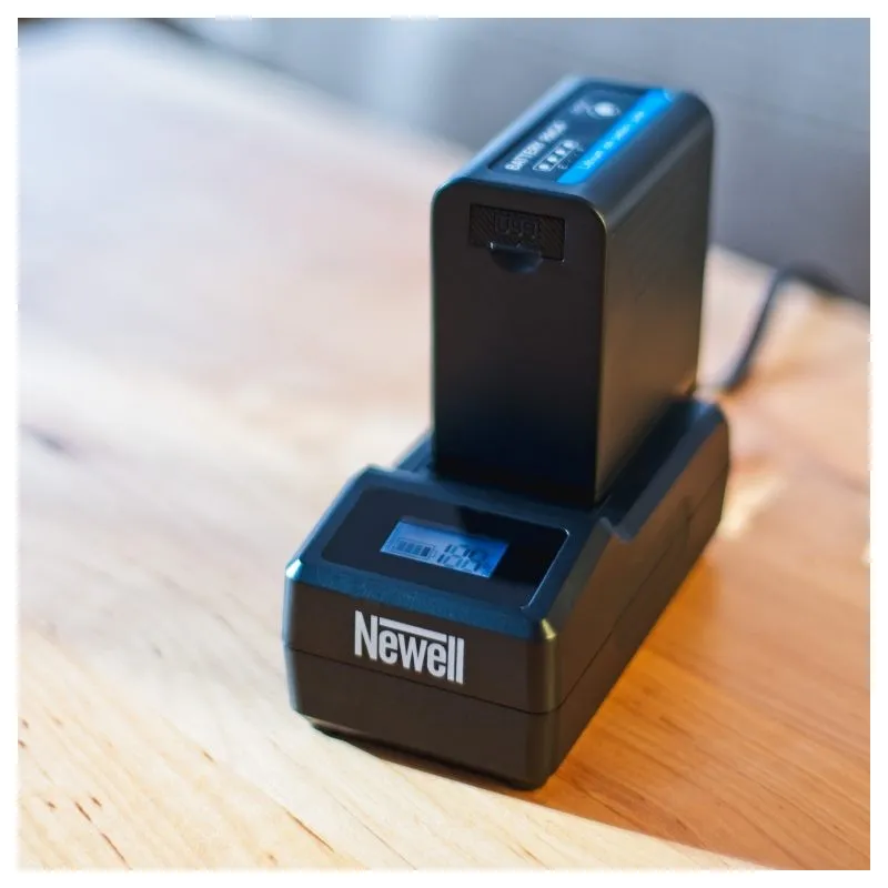 The charger is compatible with Sony system batteries, Newell batteries and other replacements.