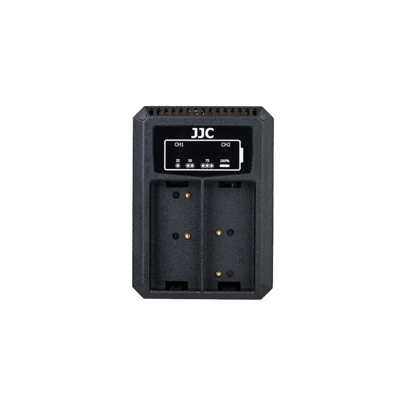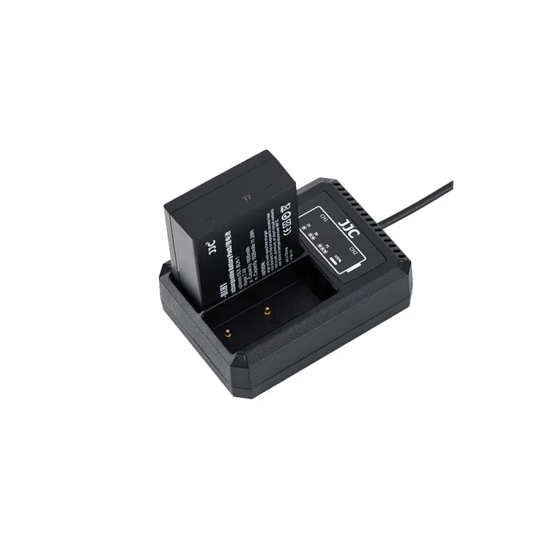 JJC DCH series USB Dual Battery Charger allows you to charge 2 batteries at the same time. Powered by USB sources, you can charge your battery with AC adapter, laptop, power bank or car charger, which enables you to refresh your battery wherever and whenever. The 2 indicator lamps display the status of the battery. The indicator lamp flashes when charging and will be constant on when charging is complete. Moreover, when the battery is about to overheat, the charger will sense and stop charging immediately. Besides that, the charger will automatically detect when the batteries are fully charged and stop charging to prevent damage to your batteries. With the built-in USB cable, this battery charger is convenient to carry.