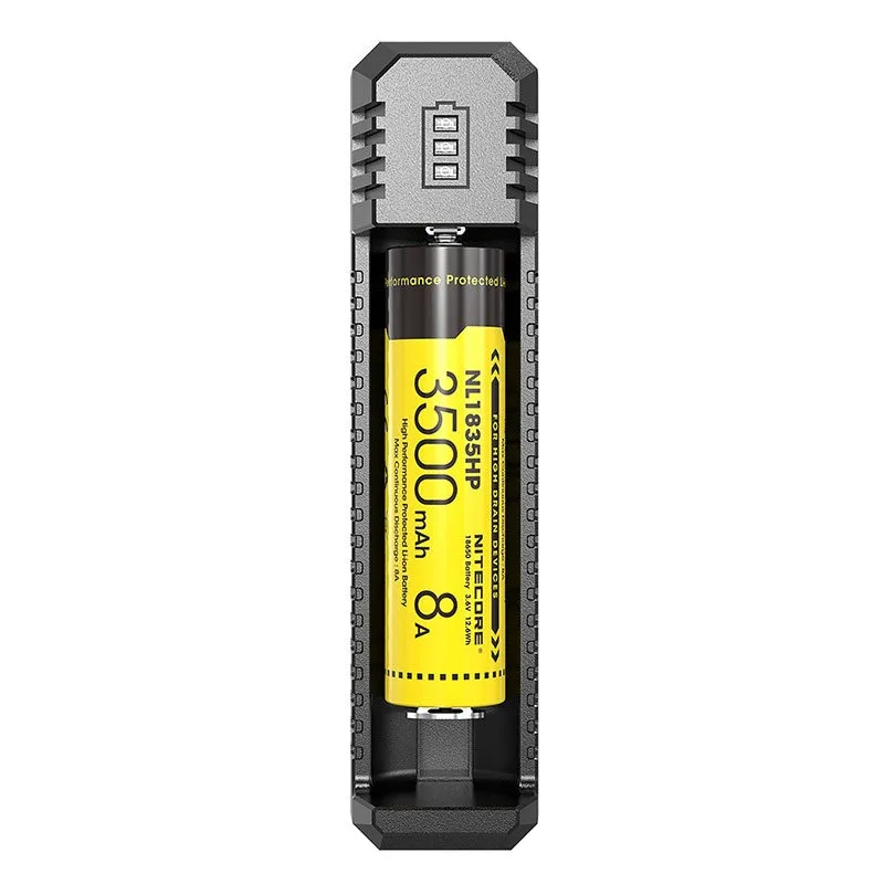 The Nitecore UI1 Portable USB Li-ion Battery Charger is a USB slot charger and has a maximum charging current of 800mA. The UI1 is also suitable for charging batteries below 2.9V with a low charge current. In this case the UI1 will only charge with 100mA. Deeply discharged batteries with protection circuits can be activated with the Nitecore UI1. With the charging indicator you can also quickly see the status of the rechargeable battery.