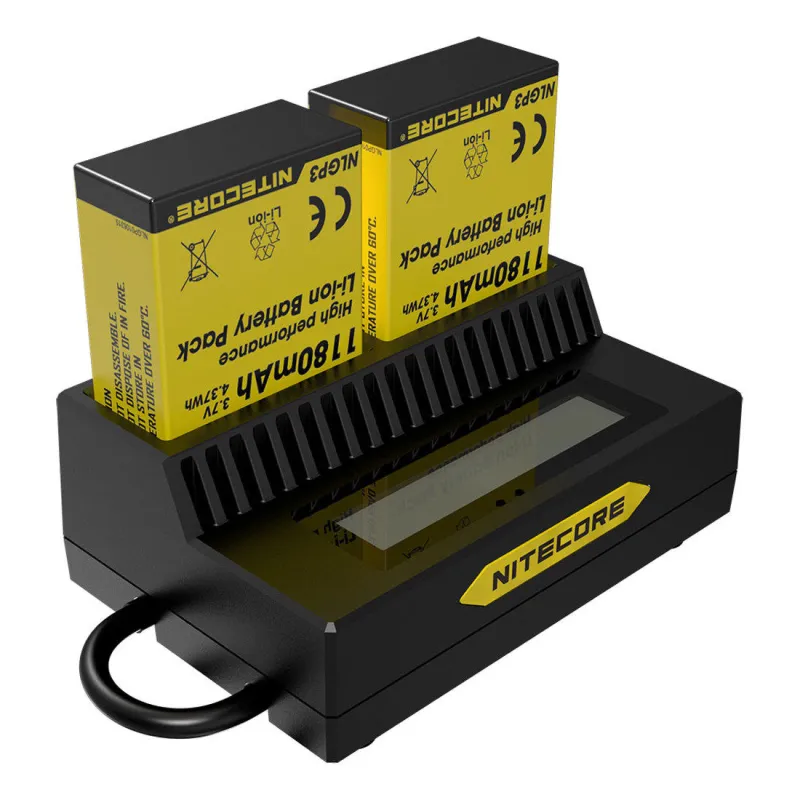 With the compact Nitecore UGP3 charger for GoPro Hero 3/3+ you can charge one or two batteries. Connect the charger to a power source via USB. If the power supply is strong enough, you can even charge a second USB device at the same time as the batteries.