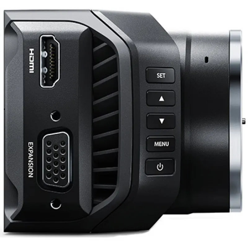 The Blackmagic Micro Studio Camera 4K is engineered with a super tough magnesium alloy core in a body that’s not much larger than the lens mount itself! You can use affordable, high performance MFT lenses or add a B4 adapter to work with traditional broadcast lenses. The Micro Studio Camera’s SDI program input accepts commands via the SDI connection from any ATEM switcher so you get remote control of camera settings, color balancing, black level, gamma, lens focus, iris and zoom control and much more. The expansion port includes PTZ and B4 lens control outputs so you can remote control remote heads and broadcast lenses all from a single SDI connection.