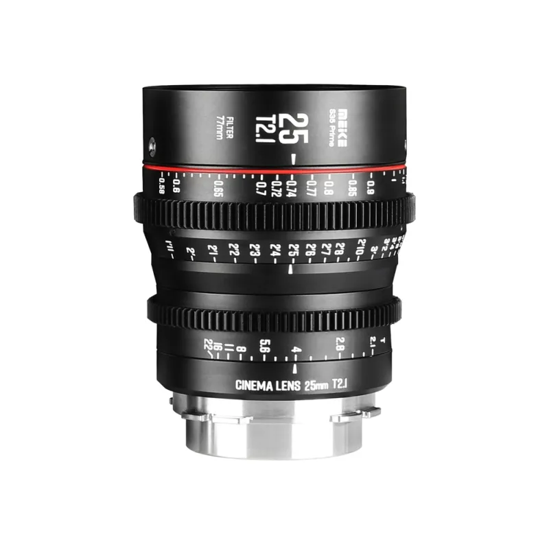 The fourth cine lens of Meike in Super35-Prime Cine Lens Series:the Meike 25mm T2.1. With a image circle of 33.6mm,it fits Super 35 format cameras,and comes with two mounts,PL/EF. This lens is one of Meike’s cine lens in new Super35-Prime Cine Lens Series.It has industry-standard 0.8mm pitch gears on the focus and aperture ring.