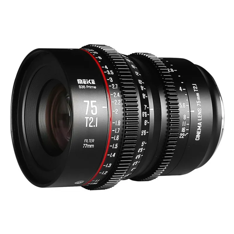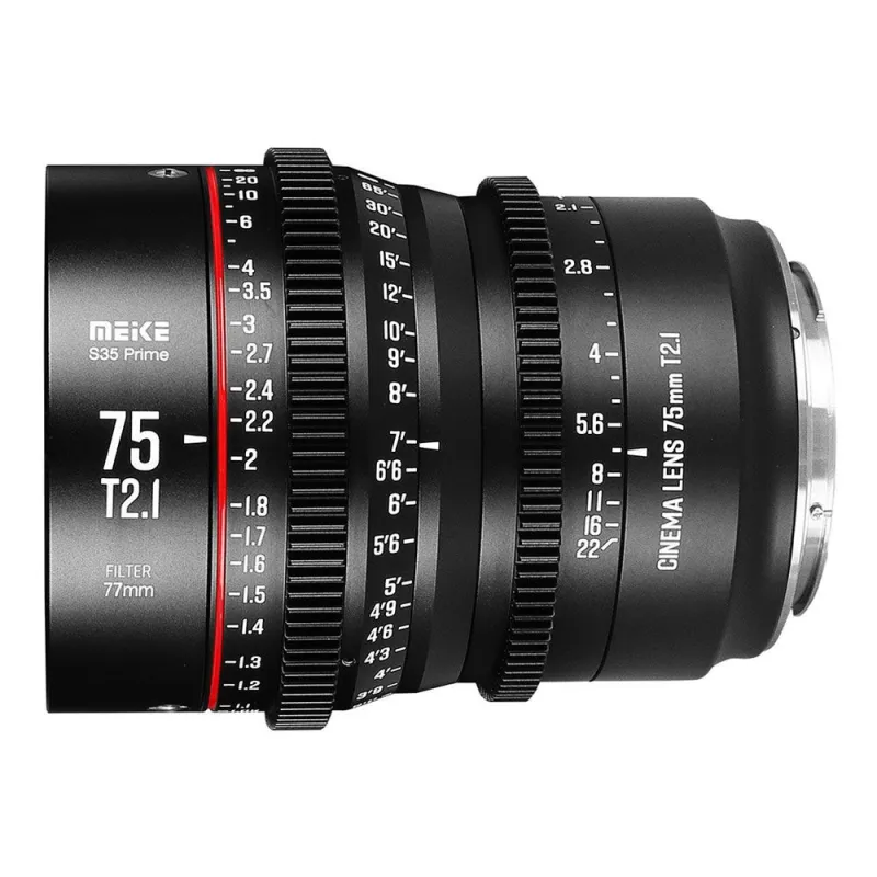 The third cine lens of Meike in Super35-Prime Cine Lens Series:the Meike 75mm T2.1. With a image circle of 33.6 mm,this lens compatible with Super 35 cameras,and it will be available in two lens mounts,PL/EF.This lens is one of Meike’s cine lens in new Super35-Prime Cine Lens Series.It has industry-standard 0.8mm pitch gears on the focus and aperture ring.
