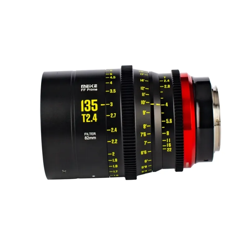 This is Meike’s seventh FF cine lens and it now joins the FF cine lens family. It covers an image circle of 45mm. It is available in either PL, Canon EF, Canon RF, Sony E, and Panasonic L mounts. It has industry-standard 0.8mm pitch gears on the focus and aperture ring.The lens design of the Meike 135mm T2.4 FF-Prime consists of 12 elements in 8 groups.The aperture mechanism consists of 17 aperture blades. The minimum focus distance is 100cm.