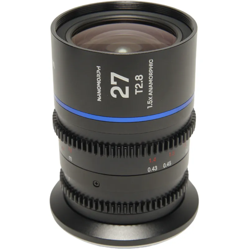 With a fast T2.8 aperture, the Laowa Nanomorph 27mm lens offers filmmakers excellent depth of field control even in low light. Its precise anamorphic optics ensure sharp details and minimal focus breathing. The compact design makes it ideal for handheld use, gimbals, and drones, while the standard 0.8 mod focus and aperture rings allow seamless integration with professional follow-focus systems. Available in various flare options, including blue, amber, and neutral, it enables operators to customize their visual style.
