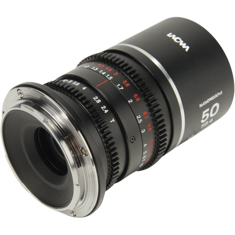 The Laowa Nanomorph 50mm T2.4 lens excels in low light with its bright T2.4 aperture, offering precise depth of field control. Its meticulously designed anamorphic optics provide sharp details, minimal focus breathing, and smooth focus transitions. Featuring a 13-blade diaphragm, it creates a shallow depth of field and a soft, cinematic bokeh effect that enhances subject separation. Its compact design makes it ideal for handheld, gimbal, and drone setups, while standard 0.8 mod focus and aperture rings ensure seamless integration with professional follow-focus systems. Available in blue, amber, and silver reflector options, filmmakers can customize their visual style.