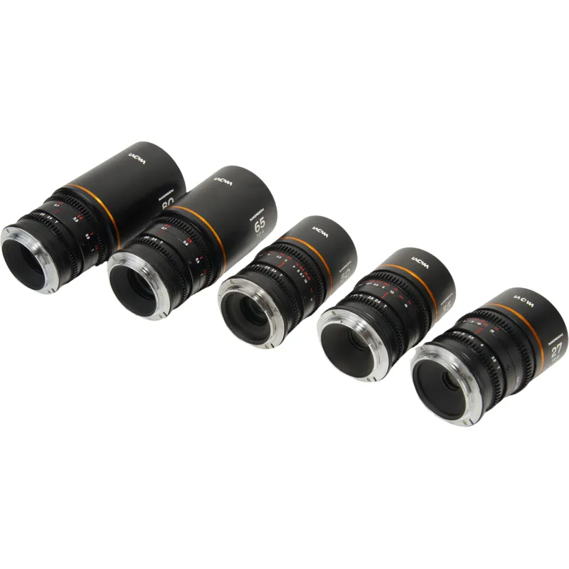 The Laowa Nanomorph S35 Prime lens set includes five versatile lenses, perfect for various shooting scenarios. Below are the details of each lens: