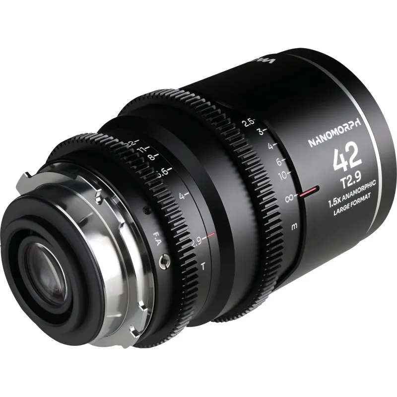 The Nanomorph LF 42mm features a 1.5X anamorphic squeeze mechanism optimized for large-format sensors, delivering a unique cinematic look with enhanced depth and dimension. This lens provides filmmakers with exceptional image quality in a compact and lightweight design, facilitating handheld shooting, gimbal operation, and dynamic camera movements.