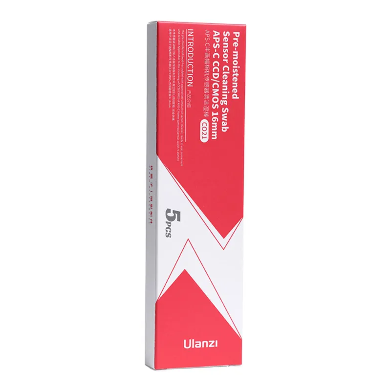 The Ulanzi CO21 APS C Sensor Cleaning Swab Kit*5pcs contains 5 16mm APS C sensor cleaning swabs specifically designed for cleaning APS C cameras. The head of the swab is fully covered with superfine micrometer level dust cloth. Ideal for cleaning Canon, Sony, Nikon, Fujifilm, Panasonic, Pentax, and other APS C sensors.