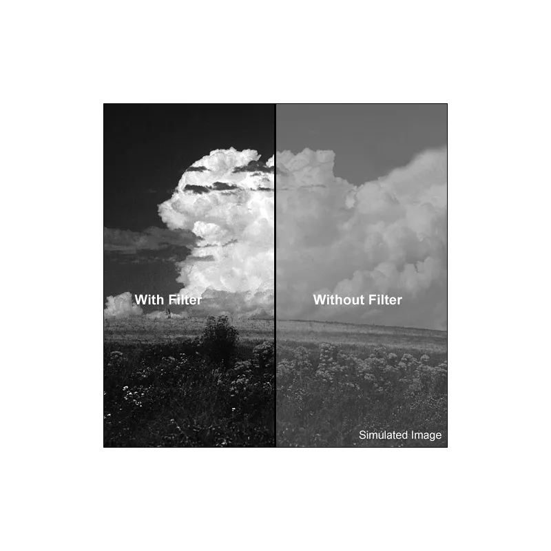 This 46mm Dark Red MRC 091M Filter from B+W is used to increase contrast and tonal separation in black and white photography. It enhances clouds while making skies and foliage appear darker, creating dramatic land and skyscapes. Distant objects will be rendered more clearly because the filter cuts through haze and fog. It has a filter factor of 8, requiring exposures to be increased by 3 stops.
