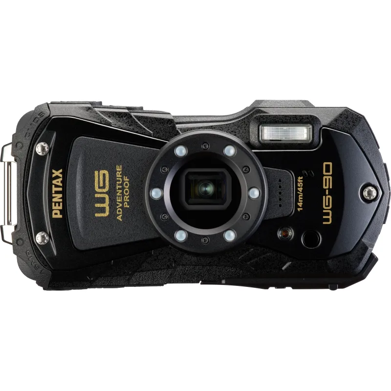 The PENTAX WG-90 is designed for serious outdoor photography, featuring dependable protective features: waterproof down to a depth of 14 meters, for up to two hours of continuous operation; dustproof against dirt and stains; shockproof against a fall from a height of 1.6 meters; crushproof against weights up to 100kgf (kilogram force), and freeze-proof against temperatures as low as -10°C. Thanks to this heavy-duty construction, the WG-90 performs superbly and dependably even in harsh, demanding outdoor conditions.