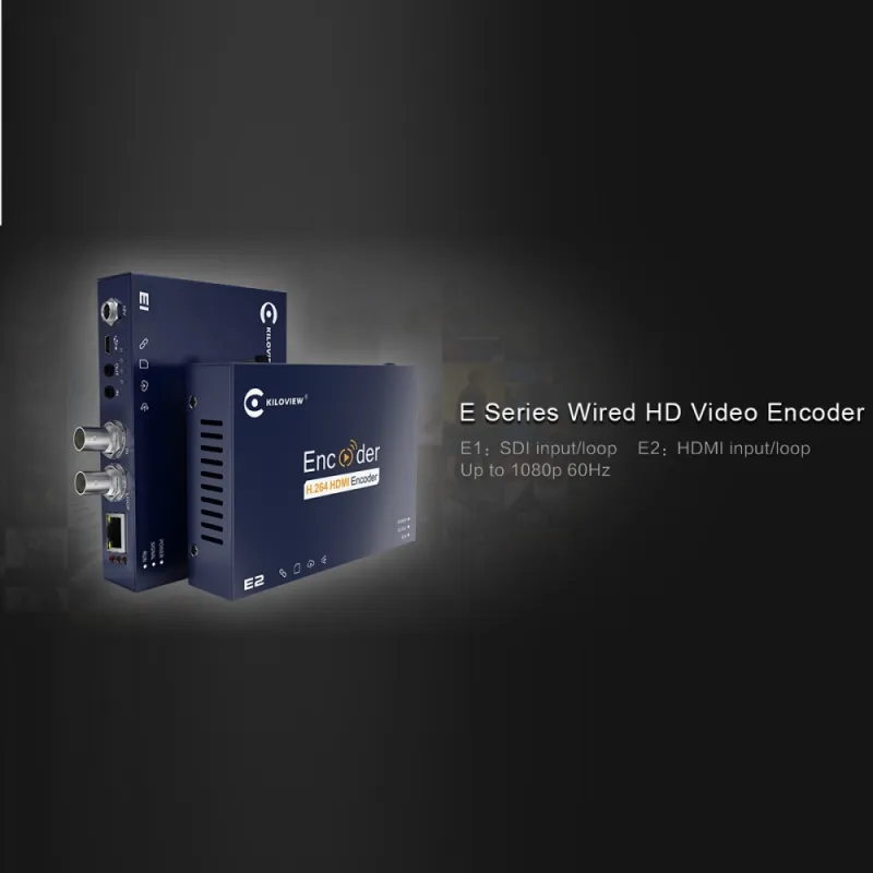 Kiloview E series wired hardware video encoder converts SDI/HDMI base-band video to H.264 IP streams, to achieve remote video transmission or live across internet WAN or over local network LAN. They support the most common protocols including SRT, RTMP, RTMPS, RTP, HLS, UDP, RTSP, Onvif, and are widely applied to professional live production, streaming, broadcasting, etc.
