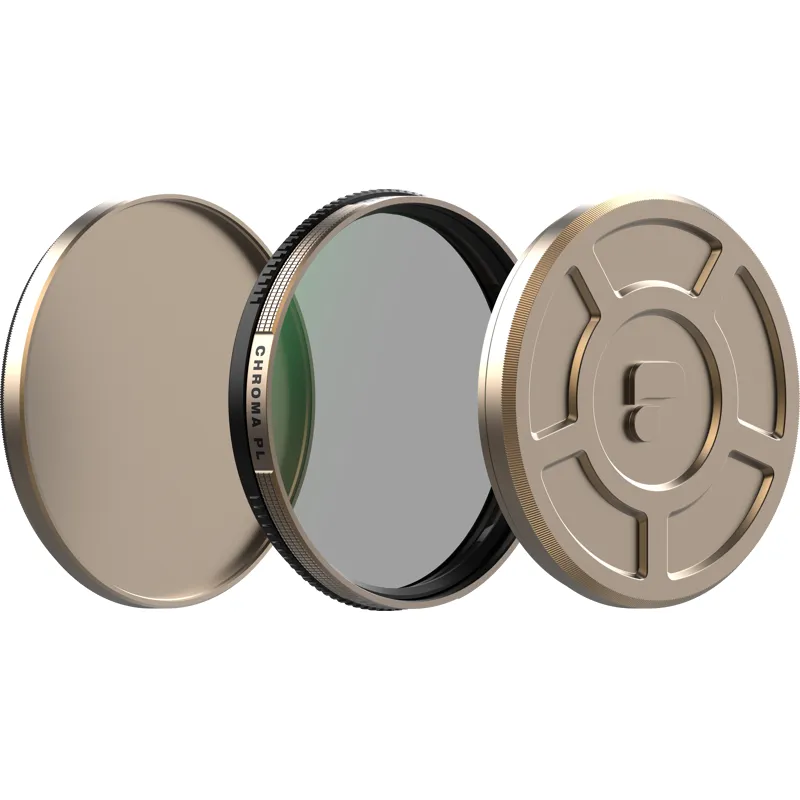 The Chroma CPL filter reduces reflections, enhancing contrast and color depth, utilizing modern glass technology with a vintage aesthetic.