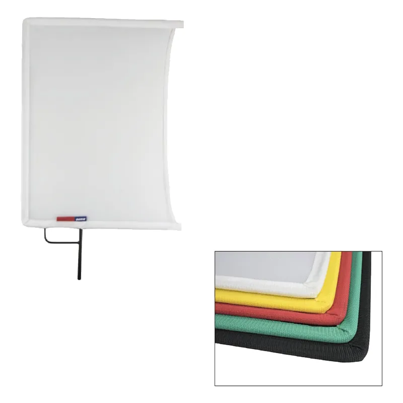 Designed primarily to control natural or artificial light on indoor or outdoor shoots. Flags are square or rectangular steel frames stitched with fabric and come with a 9.5mm diameter mounting pin welded on the steel frame for connecting a grip head (or gobo).