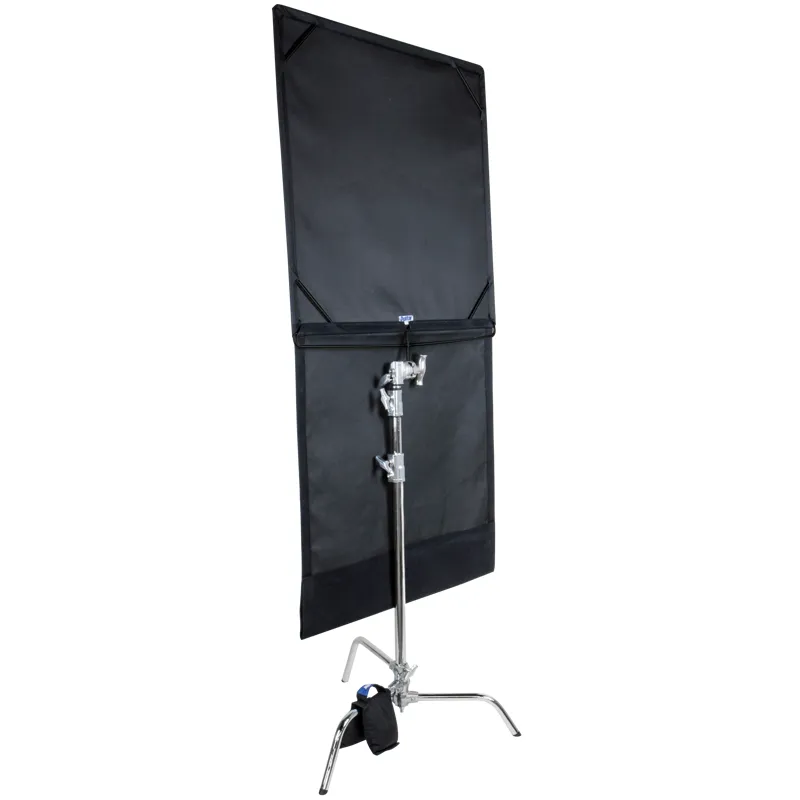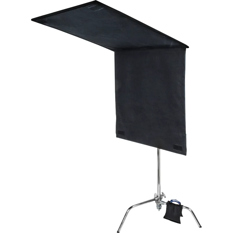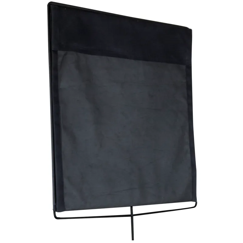 A floppy flag comes in handy to provide some shade for the camera or monitor outdoors, or to block light from a doorway with no door, or to control light spill on talent in front of green screen lighting. The Kupo KT-3636TF floppy flag 36x36 (90 x 90 cm) with top hinge is made of opaque fabric with a rigid frame. It measures 36x36 (90 x 90 cm) and can be opened to a size of 36x72 (90 x 180 cm) by detaching the Velcro.