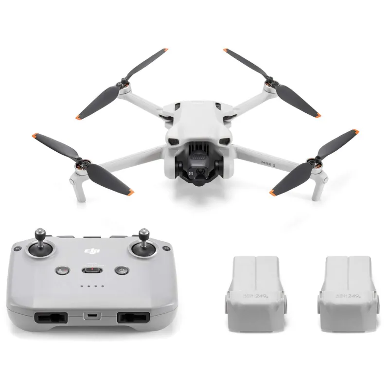 Fly longer with improved social media support when filming with the Mini 3 Drone from DJI. Compared to the previous generation, the Mini 3 sports improved wind resistance and battery life, now offering up to 38 minutes of flight time. It also adds true vertical shooting, which is a feature that lets you rotate the gimbal 90° to film vertical shots that can be immediately shared on social media platforms. Like the Mini 2, the Mini 3 captures stunning videos in 4K HDR, uses OcuSync 2.0 for a transmission range of up to 6.2 miles, and includes a host of automated functions to make piloting easier. This version of the Mini 3 gets you ready for a day of shooting with an RC-N1 remote and the Fly More Combo bundle of accessories.