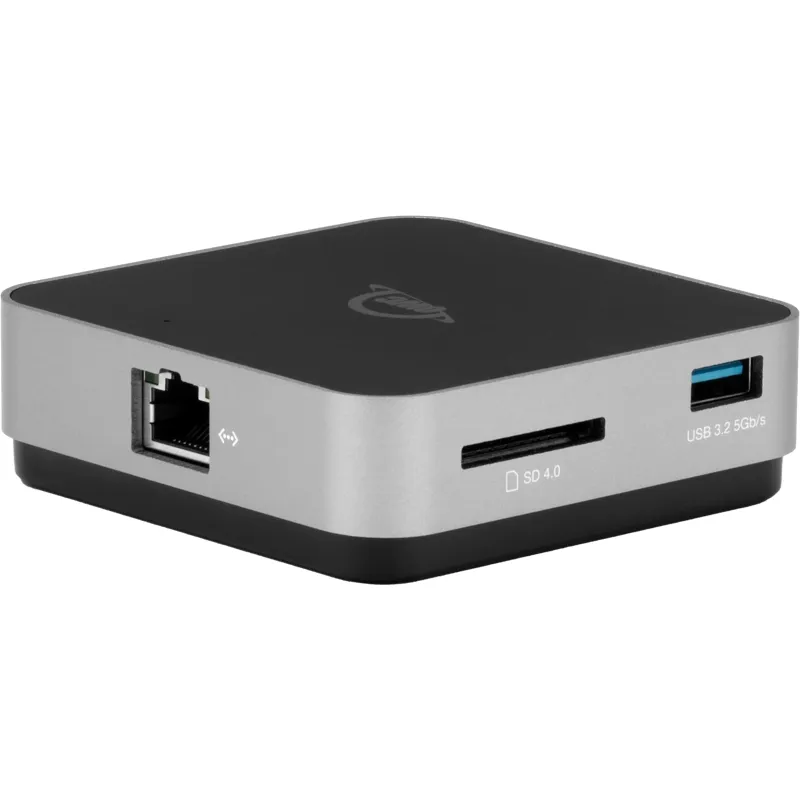 **Mobilā dzīve, vienkāršota ** OWC USB-C Travel Dock E samazina adapteru un dongle smagumu, vienlaikus paplašinot savienojamības iespējas ar sešām svarīgākajām pieslēgvietām: USB 3 Type-A, HDMI 2.0, SD karšu lasītājs, gigabitu Ethernet un USB-C strāvas caurlaide. Pateicoties integrētajam USB-C savienojuma kabelim, kompaktā Travel Dock E ļauj pārveidot jebkuru vietu - studiju, klasi, sēžu zāli vai kafejnīcu - par mobilo biroju. OWC Travel Dock E sniedz iespēju savienot, uzlādēt, rādīt un importēt pēc vēlēšanās ar datoriem, planšetdatoriem un tālruņiem, kas aprīkoti ar USB-C vai Thunderbolt 3.