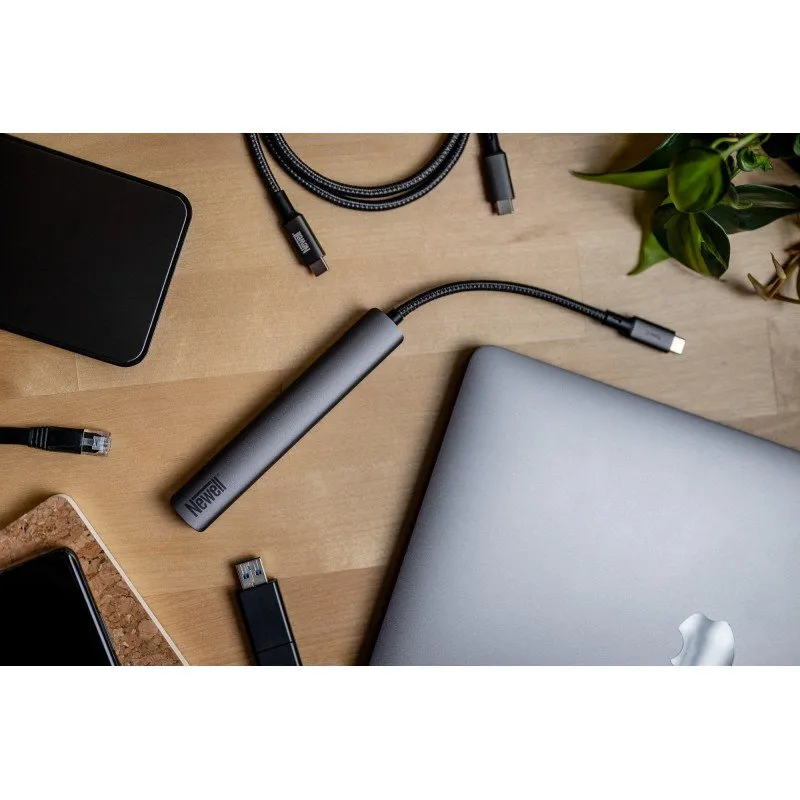 Quality and style The Newell 6-in-1 Hub will easily fit into your backpack or laptop bag. The device is made of durable aluminum alloy for durability and ultralight weight. With its graphite finish and streamlined shape, the hub fits perfectly into contemporary standards of minimalist design.