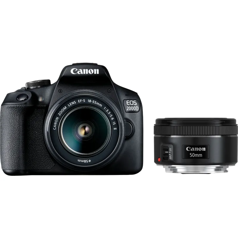 Compact and capable, the Canon EOS 2000D is a sleek entry-level DSLR featuring versatile imaging capabilities and a helpful feature-set. Incorporating a 24.1MP APS-C CMOS sensor and DIGIC 4+ image processor, the 2000D produces high-resolution stills with notable clarity, reduced noise, and a flexible native sensitivity range from ISO 100-6400 for working in a variety of lighting conditions. The sensor and processor also afford shooting continuously at up to 3 fps for photographing moving subjects, as well as Full HD 1080/30p video recording. Benefitting shooting with the optical viewfinder, a 9-point AF system incorporates a single center cross-type AF point for increased accuracy and focusing speed, and a contrast-detection focusing system offers refined autofocus precision when recording video or photographing in live view. The rear 3.0" 920k-dot LCD offers a bright, clear image for playback and review, and built-in Wi-Fi with NFC also offers the ability to wirelessly share imagery from your camera to a linked mobile device for instant online sharing.