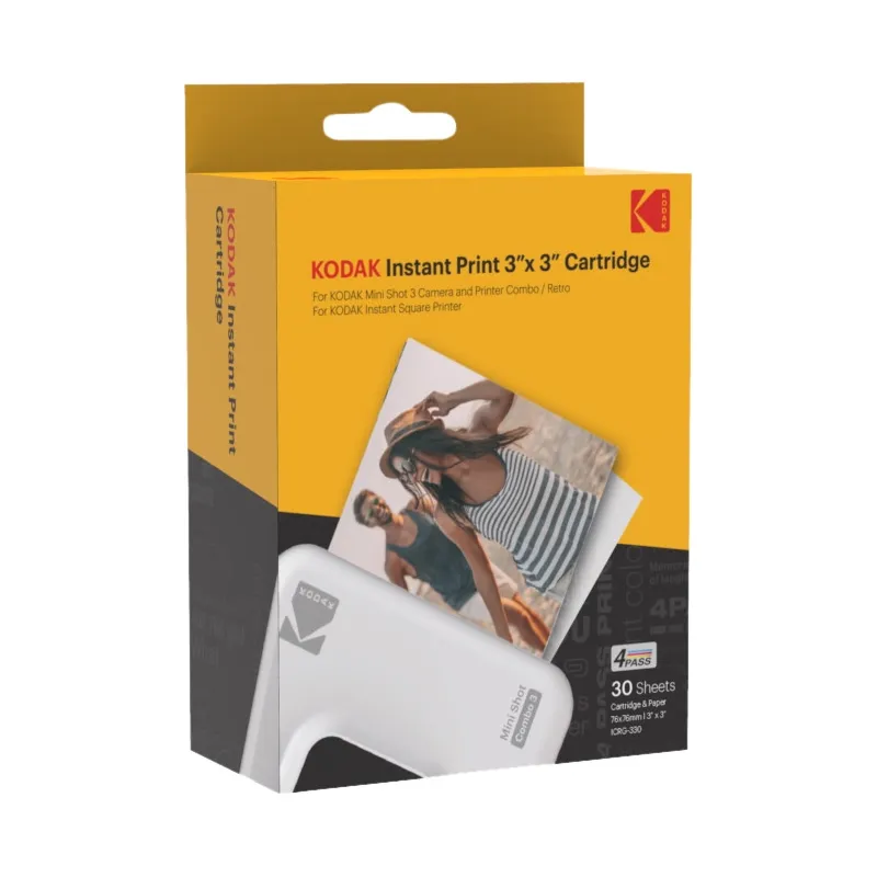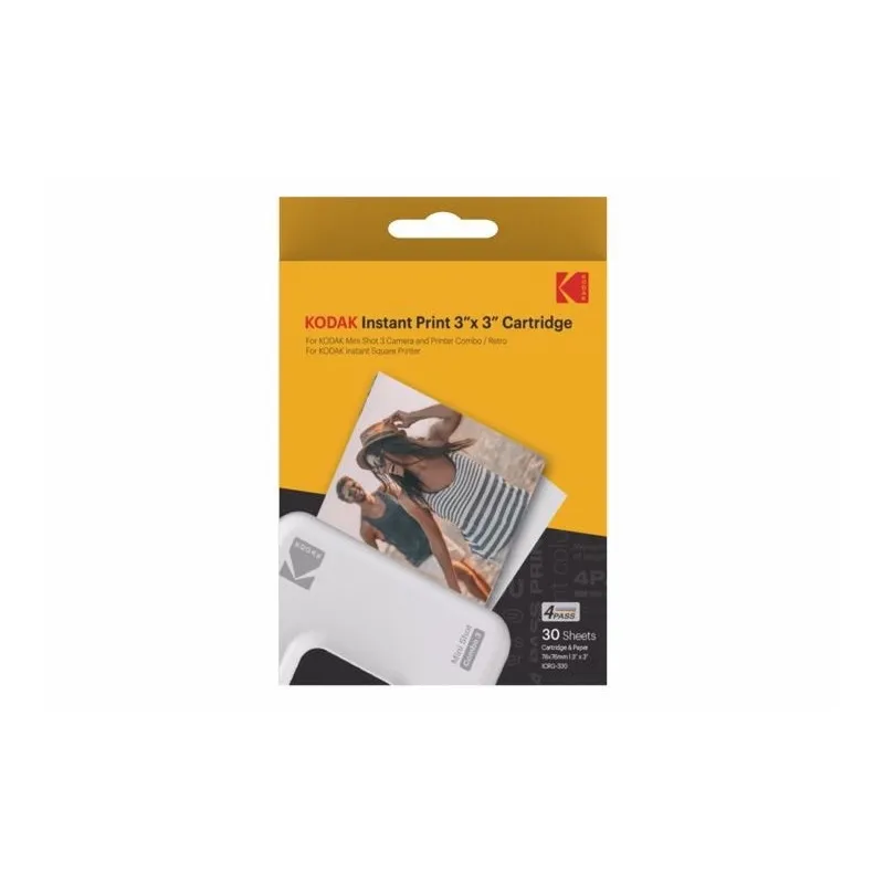 Paper cassette for all Kodak 4-pass products with 3x3 inch size. Contains 30 photo papers and ink for durable prints.