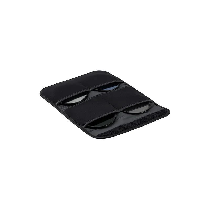 The JJC FP-K4 GRAY series Foldout Filter Pouch is specially designed for holding filters. The FP-K4S GRAY can hold 4 filters up to 58mm and the FP-K4L GRAY can hold 4 filters up to 82mm. The exterior of the filter pouch is made of high quality polyester material, sturdy and durable. Filters placed within this pouch are each held within one of four elastic pockets and can be easily accessed by opening its hook and loop closure.