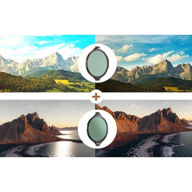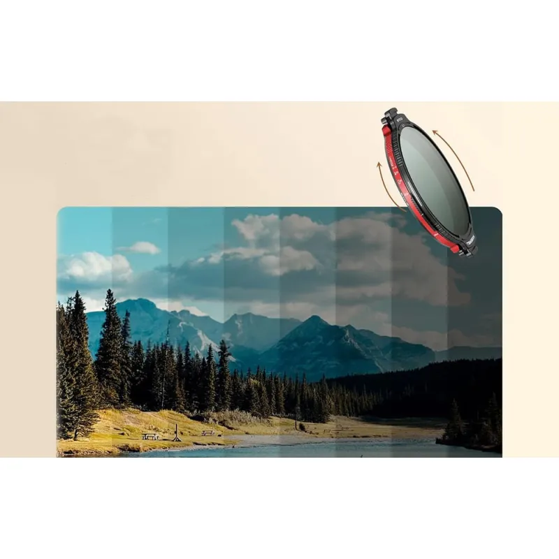 Unlike classic magnetic filters, Freewell used a mechanical locking system that holds the filter rigidly in place. The filter does not rotate on its own and does not fall off, even during intense camera movement or gimbal work. Installation and removal are instant—just press the side latches.
