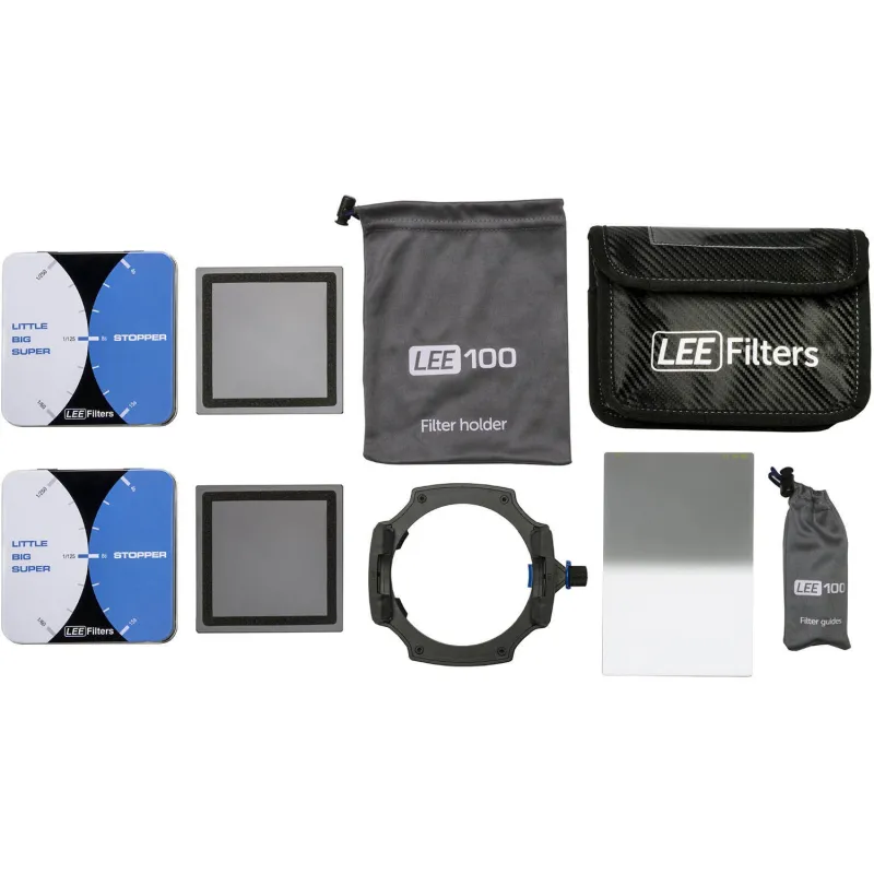 To allow this filter to be placed in front of a lens, this kit contains a LEE Filters LEE100 Filter Holder that is designed to allow for the convenient use of up to three 100mm-wide, 2mm-thick filters, along with a separately available polarizer filter.