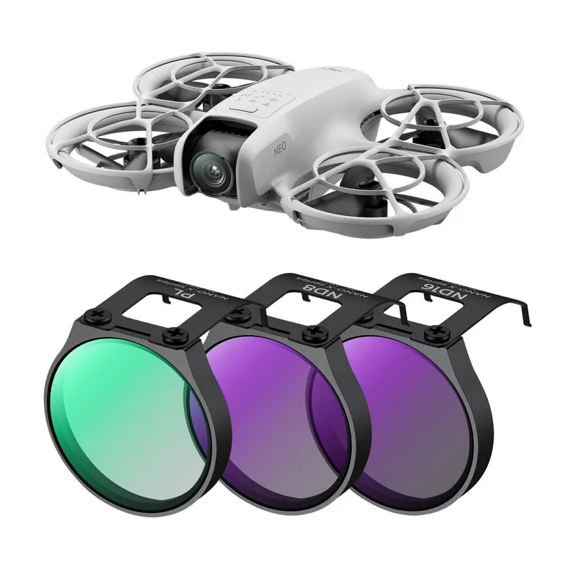 The K&F DJI NEO 3pcs filter kit includes CPL, ND8, and ND16 filters, specifically designed for DJI drones. Crafted from HD optical glass with 28 multi-layer coatings, these filters enhance color, reduce reflections, and control exposure, ensuring gimbal safety for high-quality aerial shots.
