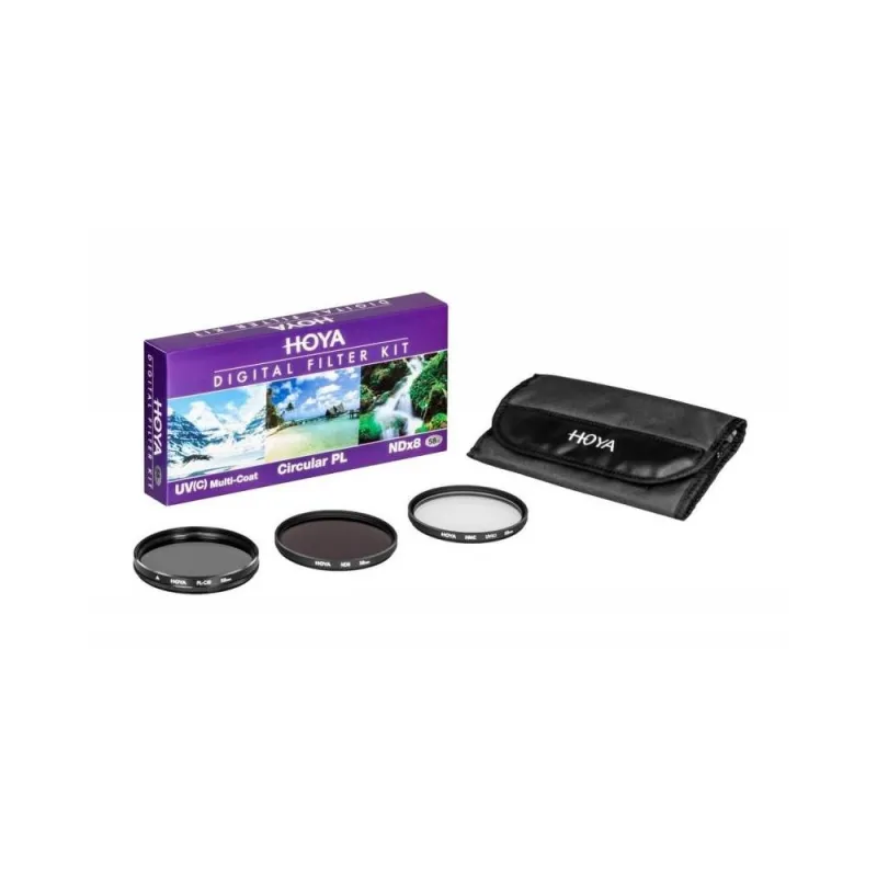 ND8 filter A neutral density filter has several uses and offers the possibility to achieve otherwise unachievable results. ND filters appear gray and reduce the amount of light reaching the film. They have no effect on color balance. This filter offers a filter factor of 0.9, equivalent to 3 stops of light. A set of Hoya Digital Filter Kit II - 72 mm