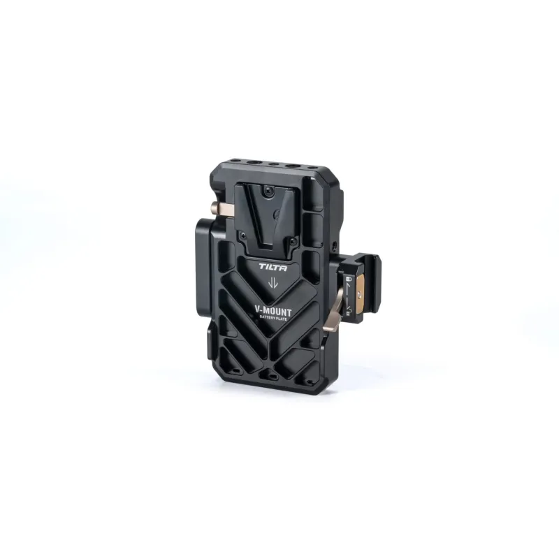 This V mount battery plate attaches to the base of the post of the Tilta Float System to provide power for your gimbal setup. Two V mount battery plates can be attached to the plate (one on each side) and it attaches to the post via a very simple NATO rail connection.
