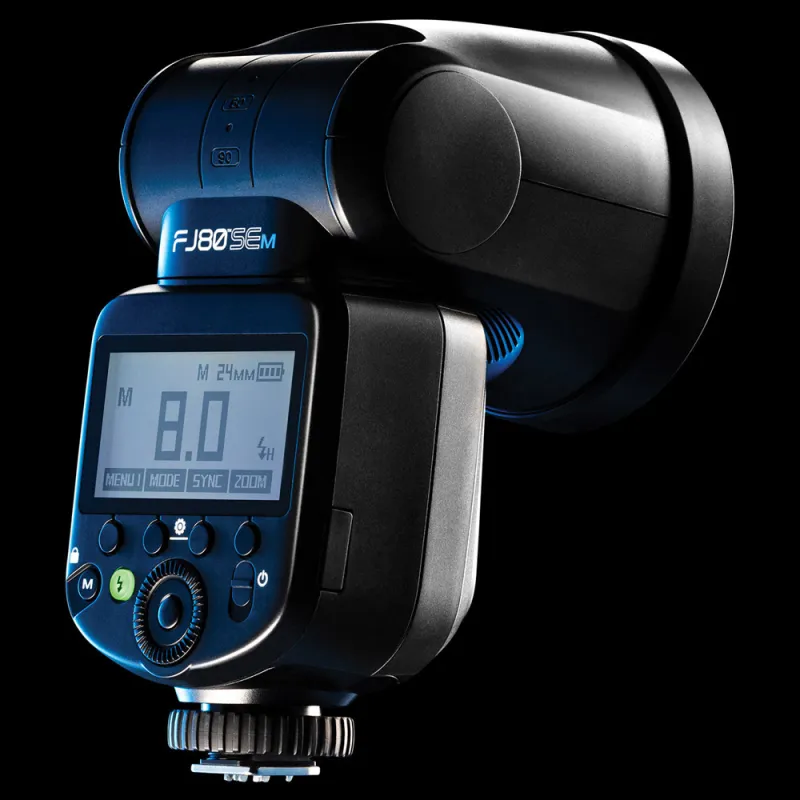 Flash modes and LCD The FJ80 SE features Manual and TTL flash modes, High Speed Sync (HSS) up to 1/8000s, and Front and Rear Curtain Sync. The intuitive menu system with LCD has easy operation and lets you control the flashs various modes., Flash head