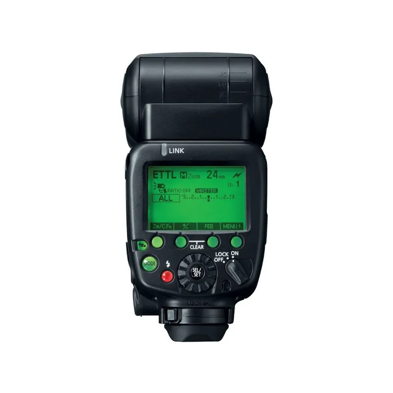 The built-in Canon RT system receiver allows radio communication with the YN600EX-RT version I and II, Canon 600EX- RT, 600EX II-TR and 430EX III flashes. The flash can be used both as a control unit for the operation of the other aforementioned lamps and as a receiver in ‘slave’ mode. The RT’s wireless communication system allows control of four groups of lamps in 15 channels, support for TTL flash automation, manual and strobe modes.