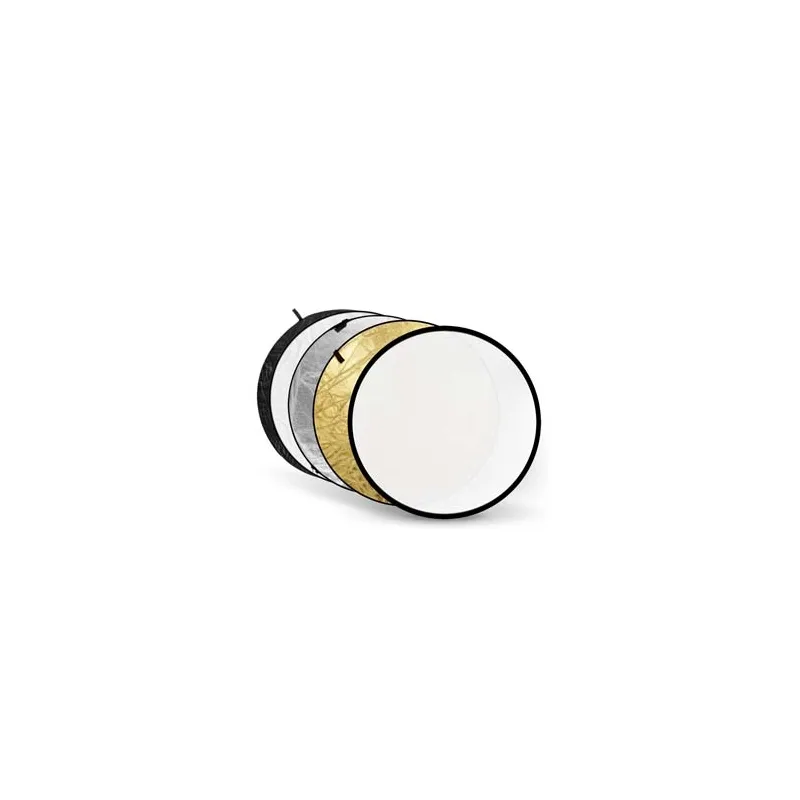 Sturdy 5-in-1 reflector from Godox, in the colors gold, silver, black and white. In addition, a transparent screen is included which can also be used as a diffuser. This 5-in-1 reflector is an obligatory item in every photo bag due to its compact size!