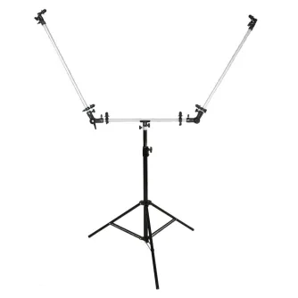 The tripod with reflector bracket is an ideal assistant for holding your reflectors. You can attach till 3 foldable reflectors to this bracket sturdily and without complications.