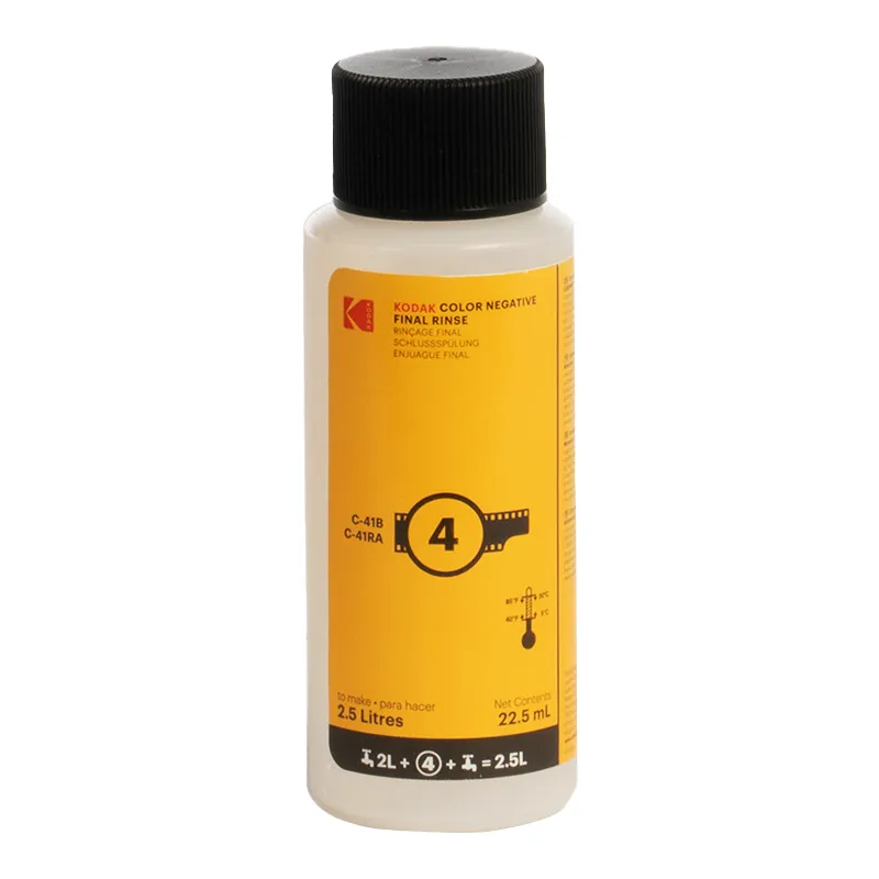 The Kodak Color Negative C-41 film processing kit is an all-in-one solution for developing color negatives and black-and-white chromogenic films. This versatile kit is compatible with the standard C-41 process and can be used with small development tanks and rotary processors. The kit includes concentrated chemicals that can be easily mixed with water to create 2.5 liters of working solution. The chemistry can be used as a one-time solution or supplemented with appropriate Kodak Color Negative replenisher solutions available separately. Process a varying number of rolls depending on your unique processing requirements. This new kit is an excellent replacement for the now-defunct Tetenal Colortec C-41 kit. It is ideal for quick and convenient color film development at home.