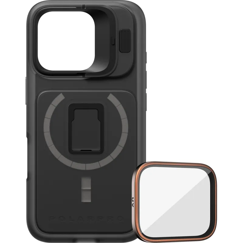 The case features an embedded aluminum cold shoe mount for a secure mounting point and a new Flip-Down defender to protect your lenses while enabling quick shots. The MagSafe array is now 2x thicker and stronger for a more secure connection to vehicle mounts.