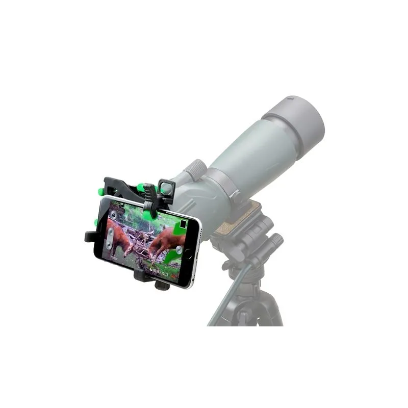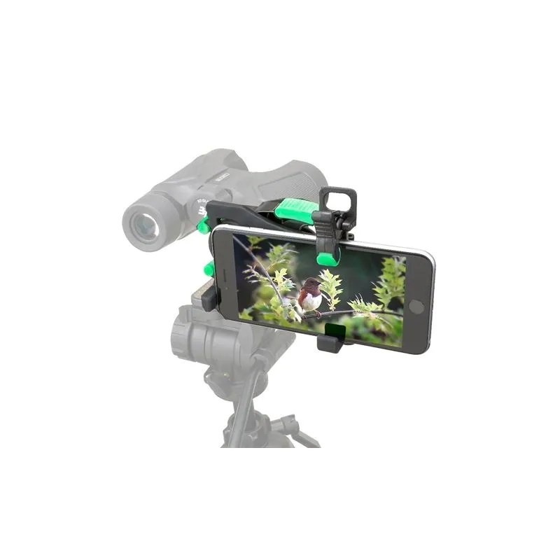 The Carson Universal Smartphone Adapter IS-200 HookUpz 2.0 is designed for digiscoping. Digiscoping is taking photos and videos using binoculars, spotting scopes, telescopes, microscopes and/or nightvision camera's. The HookUpz can be used for optical products with a maximum eyepiece diameter of 56 mm. We recommend not to digiscope for more than two consecutive hours to prevent stretching of the springs. The HookUpz 2.0 is suitable for phones with a maximum width of 9.5 cm.