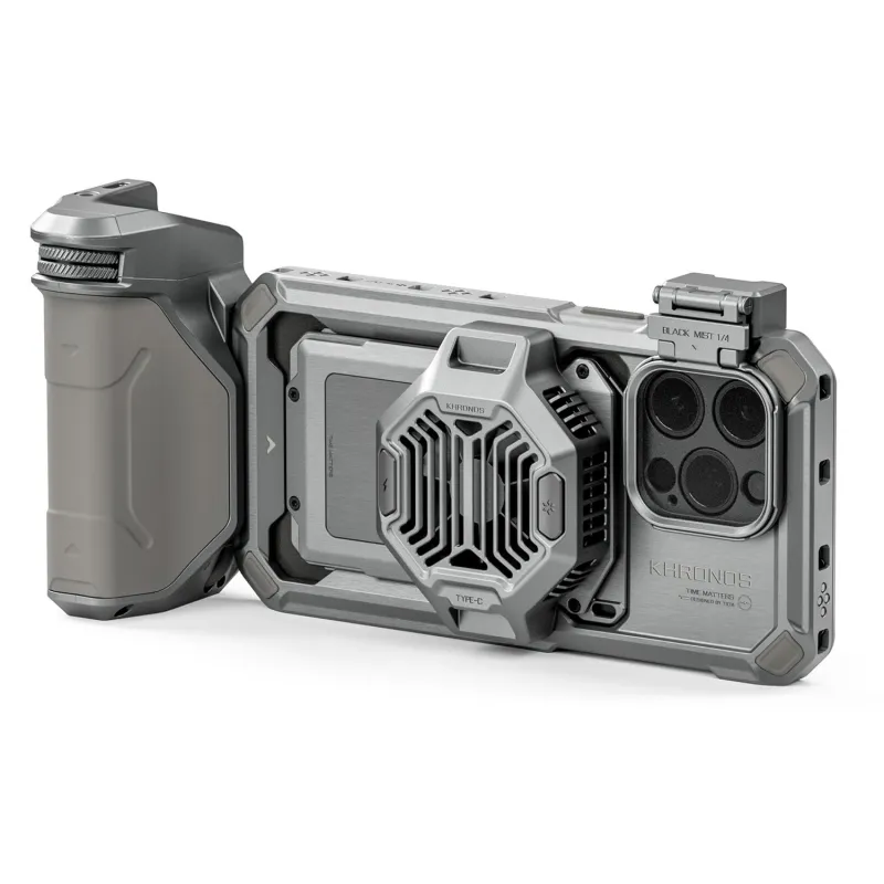 The Khronos Advanced Kit is designed for mobile filmmaking, offering functionality and elegance for iPhone 15 Pro / Pro Max. The case provides reliable protection without compromising style or functionality. Installation is secure with four screws.