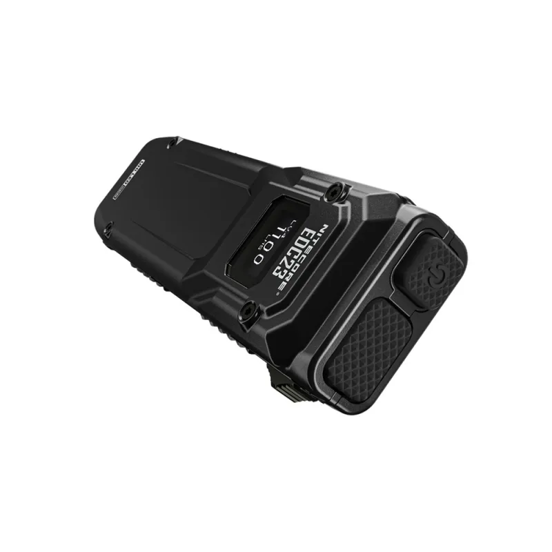 Short yet powerful, the EDC23 torch delivers unrivaled performance in a slim, lightweight design. Measuring just 13.5 mm thick and weighing 101 grams, it produces an impressive 2500 lumens with a range of 280 meters. The built-in 1500mAh battery ensures up to 39 hours of use, complemented by a multifunction OLED display and a durable construction of stainless steel and carbon fiber.