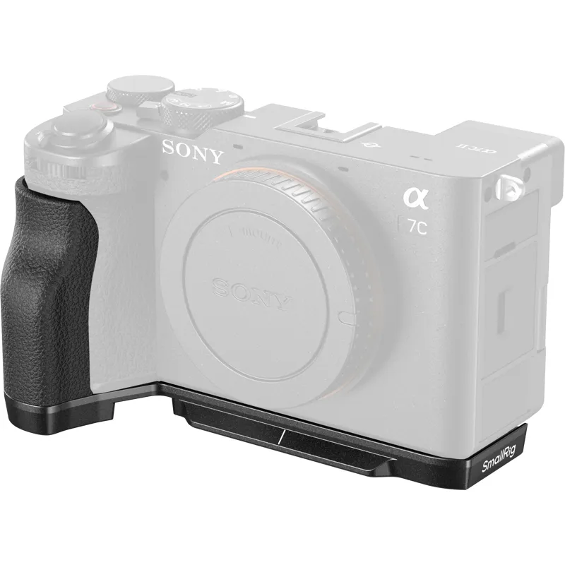 The handle for improved grip The SmallRig 4797 L Shape Mount Plate with Silicone Handle for Sony Alpha 7C II / Alpha 7CR is designed to improve camera grip. The L Shape Grip attaches to the camera at the bottom with a 1/4 20 screw, and the built in silicone pads prevent scratches.