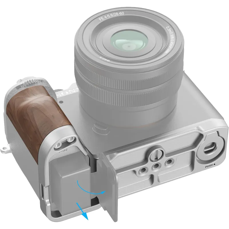The handle for improved grip The SmallRig 4796 L Shape Mount Plate with Wooden Handle for Sony Alpha 7C II / Alpha 7CR is designed to improve camera grip. The L Shape Grip attaches to the camera at the bottom with a 1/4 20 screw, and the built in silicone pads prevent scratches. The grip is made of natural solid wood, elegant with a rich, natural feel and ergonomically designed to enhance grip feel.