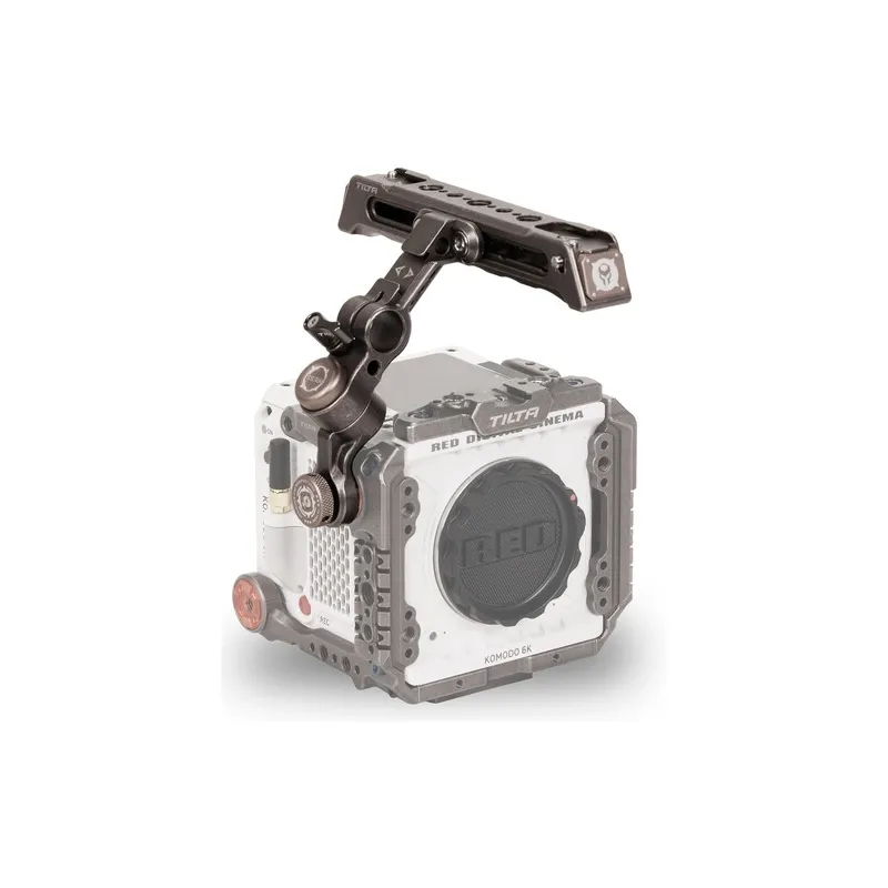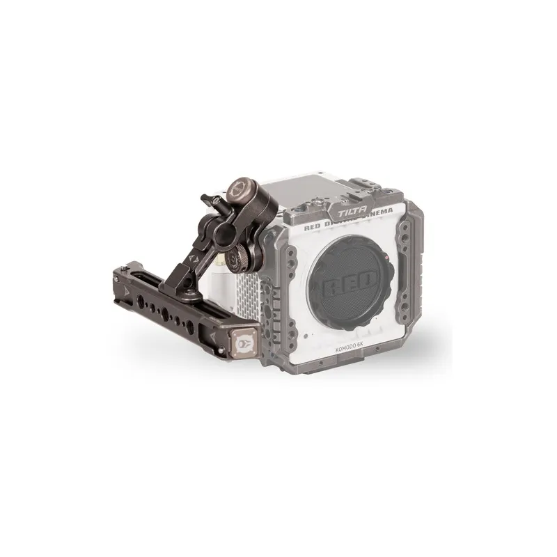 This adjustable handle can be attached to one of the rosette mounting points on the camera cage for RED Komodo.