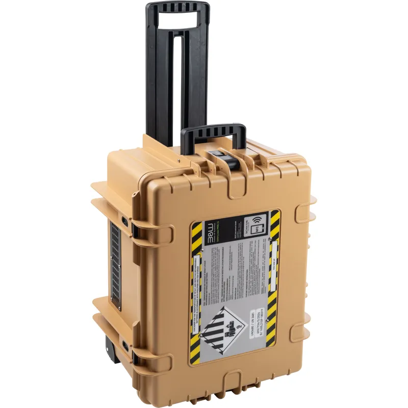The BU&W battery.case P908.16 is designed for safe storage and transport of lithium batteries, with a maximum payload of 16kg. It is robust, user-friendly, and approved for hazardous goods transport.