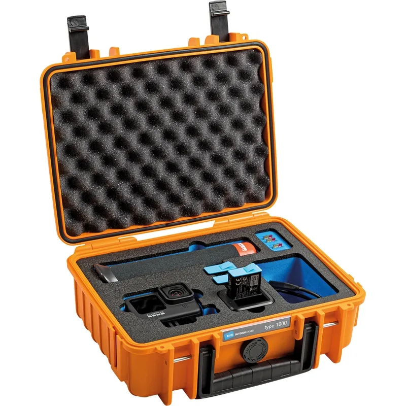 THE case for your GoPro Actioncam + Accessories! Thanks to its custom foam insert it provides sufficient space for your GoPro Hero 9 and the accessories: the dual battery charger, up to 3 batteries, floating hand grip, up to 7 microSD memory cards, mounting brackets and cables. The spares compartment (92 x 62 x 57 mm) offers space for additional accessories and it is possible to charge two batteries directly in the case.